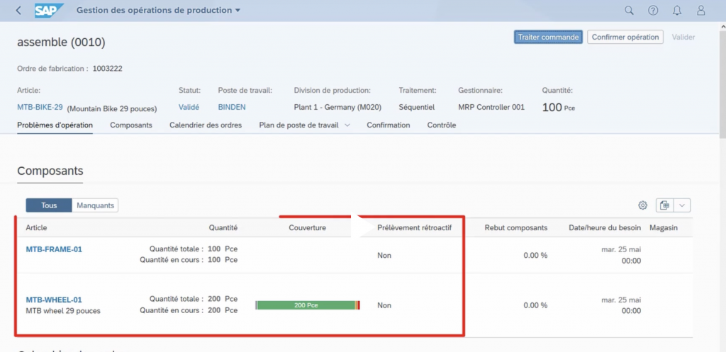 On clique sur sauvegarder l’ordre de fabrication a bien été confirmé.
