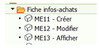 La fiche info-achats se crée via la transaction ME11 et se modifie via la transaction ME12.