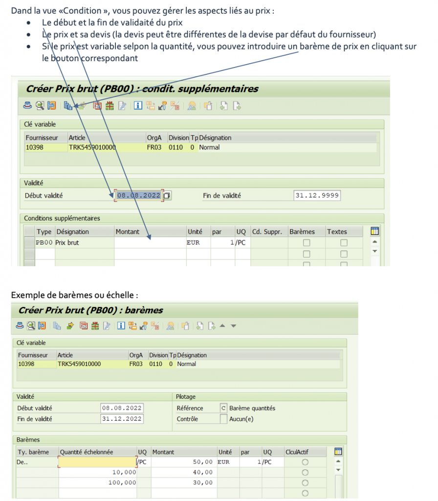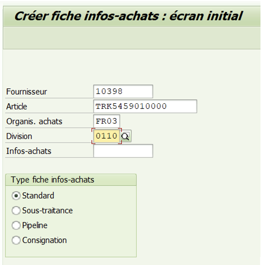 La fiche info-achats peut être créée au niveau purchasing organization.