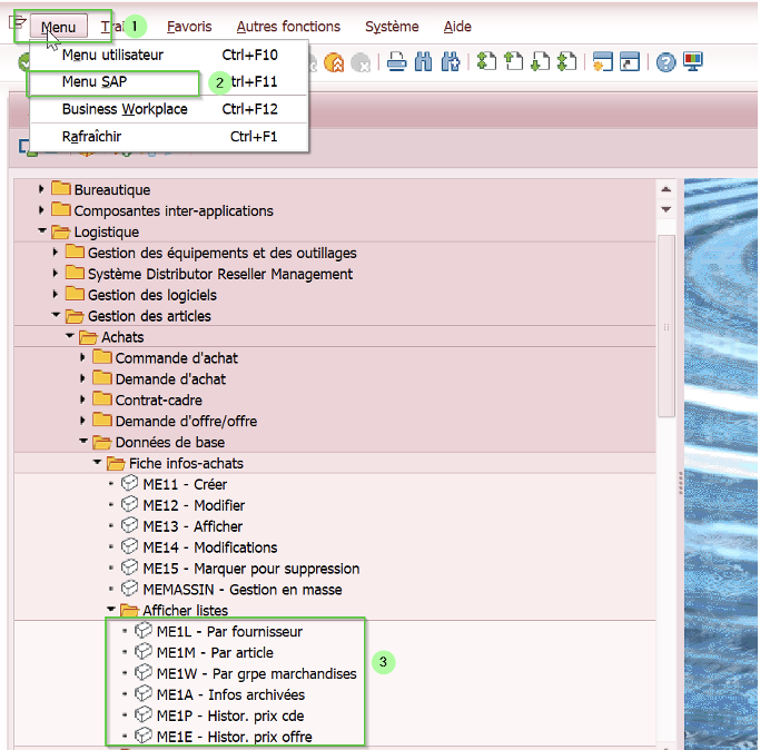 - Sélectionner « Menu SAP » dans la barre des menus =>Menu