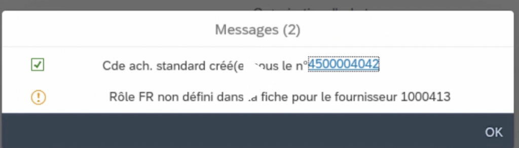 La commande d’achat a été crée.