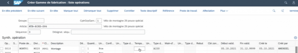 On a ensuite besoin de connaitre les opérations de montage de la gamme. Pour cela, on clique sur l’onglet opération.