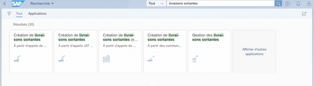 Pour créer une livraison sortante on tape dans la zone de recherche livraison sortantes ou le code de transaction VL10.
