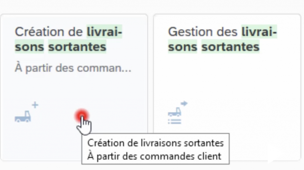On clique sur la vignette création de livraisons sortantes à partir des commandes clients.