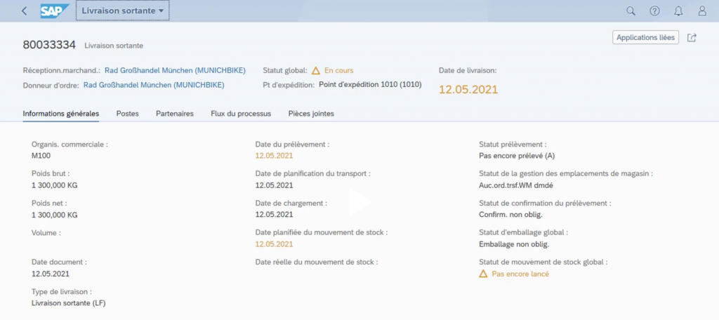 Pour afficher les informations de la livraison, on clique sur son numéro et on peut y voir toutes les informations concernant la livraison que nous venons de créer.