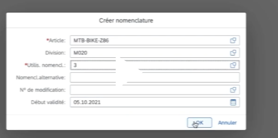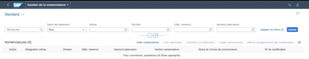 Pour créer une nomenclature on tape le code de transaction CS01 ou gestion de la nomenclature dans la barre de recherche.