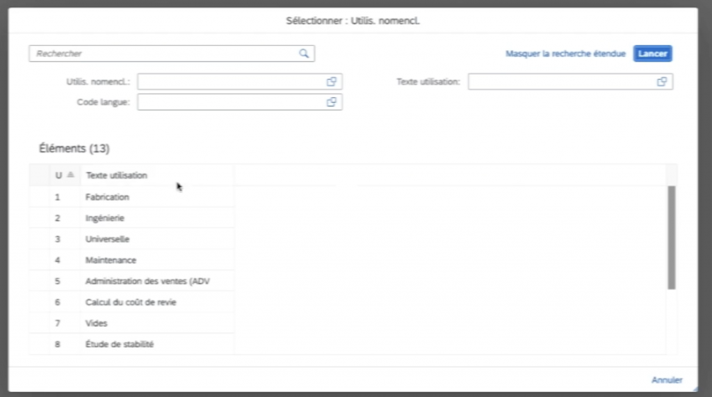 On y renseigne l’article, la division, et l’utilisation de la nomenclature ( a quel fin la nomenclature servira voir ci dessous) ici il s’agit de la numéro trois (universelle).