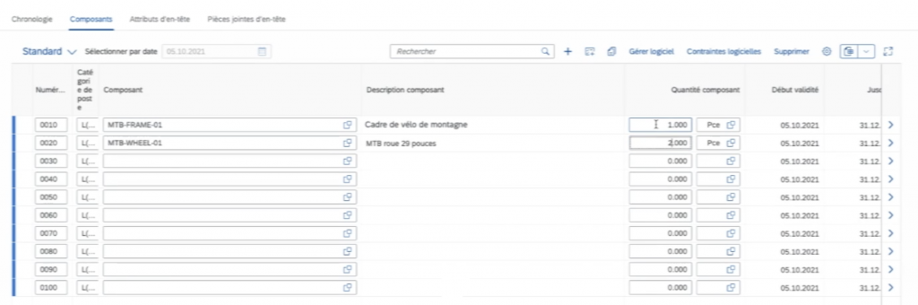 Dans le cas présent, on veut créer un VTT (mountain bike). On sélectionne les composants cadre et roues qui entrent dans la fabrication du vélo.