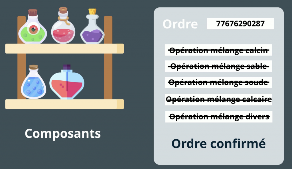 Pour la bouteille de verre, l’ordre de fabrication est réalisé par étape de manière chronologique.