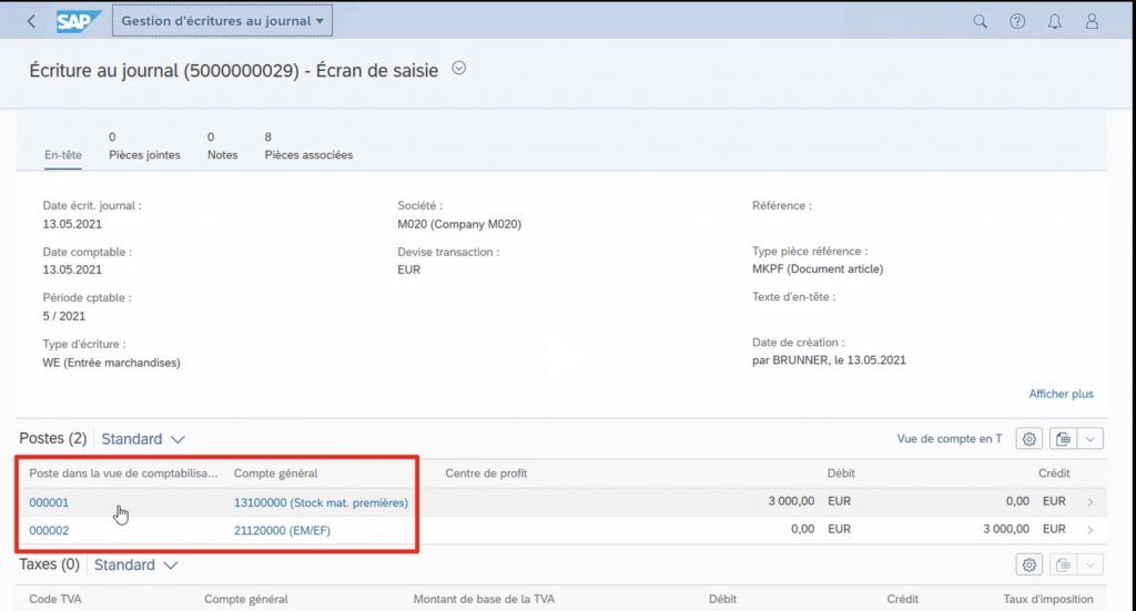 On clique sur cette dernière et on voit dans l’écriture au journal sur quel ligne de compte général les enregistrements ont été effectués.