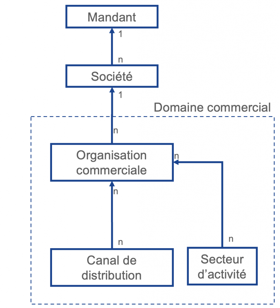 Domaine commercial : Un domaine commercial se définit comme la combinaison d’une organisation commerciale, d’un canal de distribution et d’un secteur d’activité. Les documents de vente sont définis sur un domaine commercial. Ex : 0100/01/00