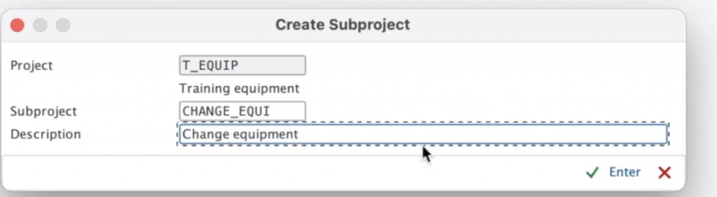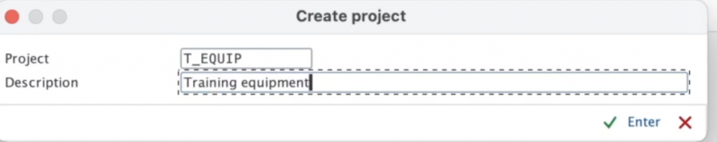 On clique sur entrée, le projet T_EQUIP est crée il contient un sous projet et un objet.