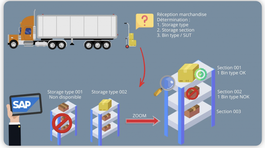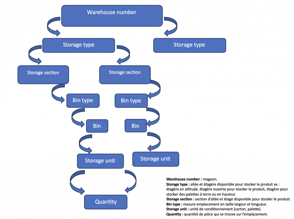 L’agencement physique d’un entrepôt exige la mise en place de SAP WM. En d’autres termes, l’entrepôt contient des articles (matériaux) avant que le système technique ne soit en place. Par conséquent, définir l’entrepôt en terme de composant de gestion est un exercice de transposition de l’entrepôt et les processus de celui – ci dans les termes définis par SAP.